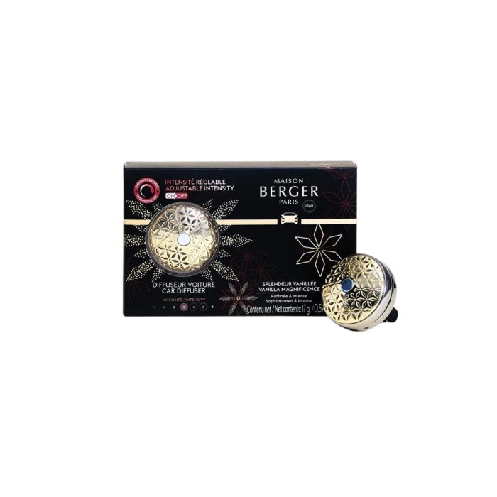 De Autodiffuser Pomelis On/Off Splendeur Vanillée brengt een vleugje luxe naar elk autoritje. Dankzij het elegante goud-zilveren ontwerp met fijne uitsparingen, past deze diffuser perfect in elk interieur — van moderne auto tot klassieker. Niet alleen mooi om te zien, maar ook ontworpen voor optimaal gebruiksgemak: met één klik op het ventilatierooster bevestigd en dankzij het On/Off‑systeem eenvoudig te regelen in geurintensiteit.